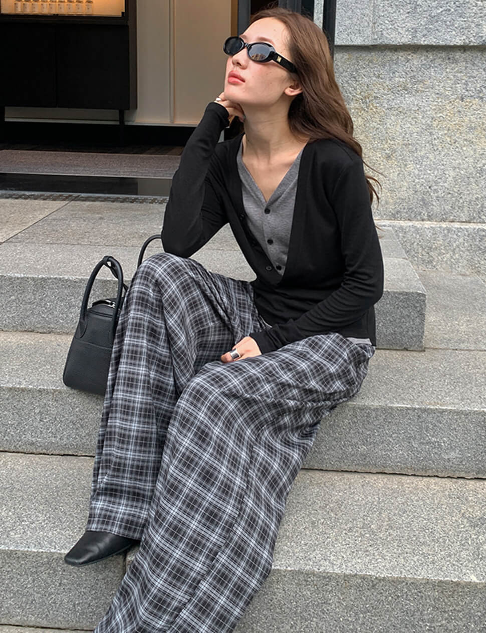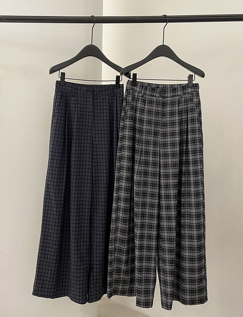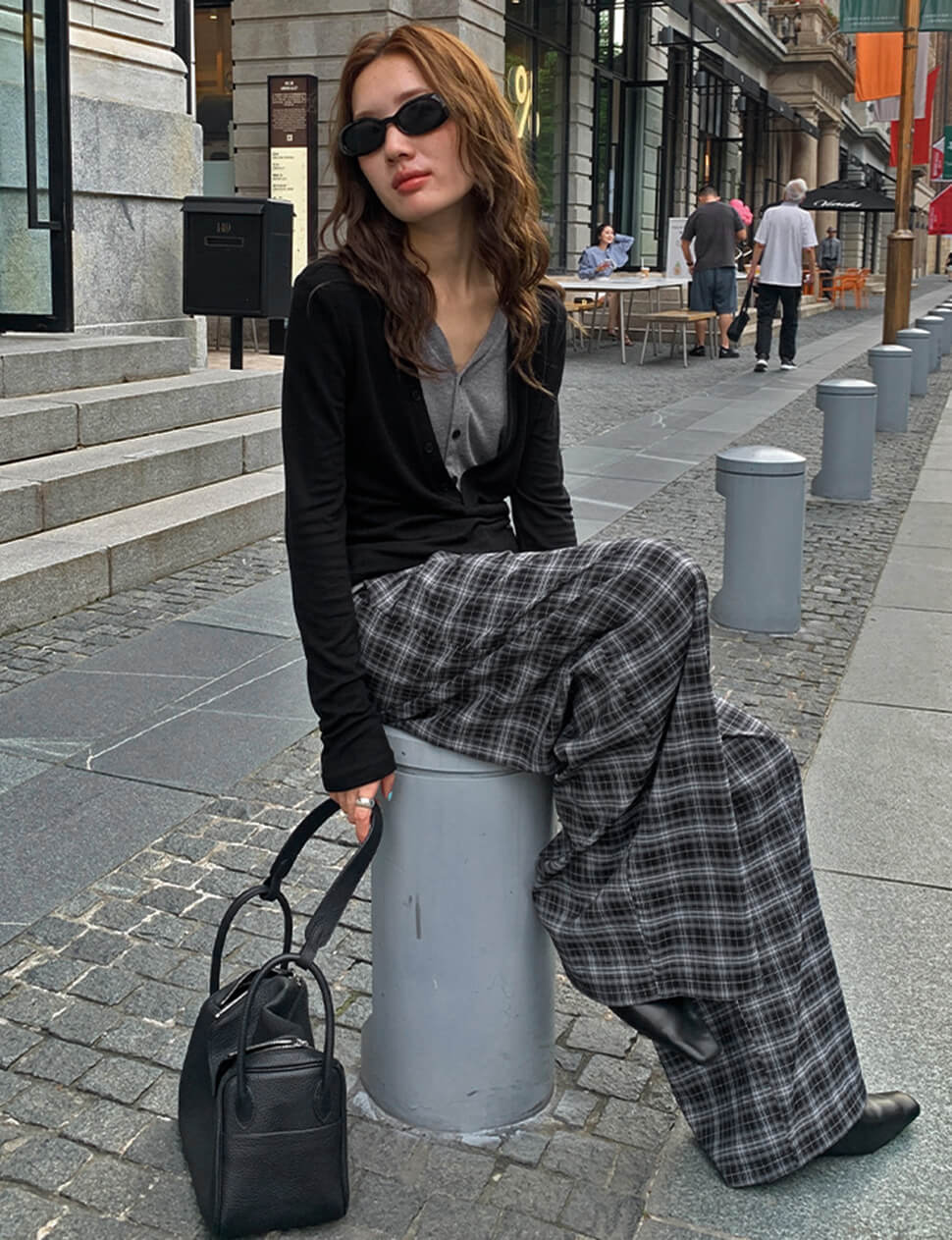 The pants that make getting dressed feel effortless. Cut in a relaxed wide-leg silhouette with a high waist and soft pleats, these grey and black plaid trousers strike the perfect balance between tailored and laid-back. Made from a lightweight fabric, they drape beautifully and feel even better. Style them with a fitted black top and square-toe boots