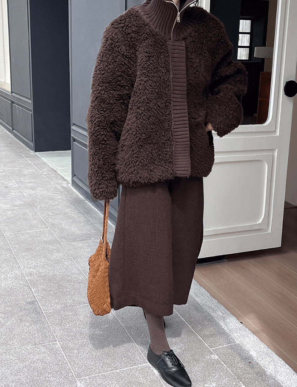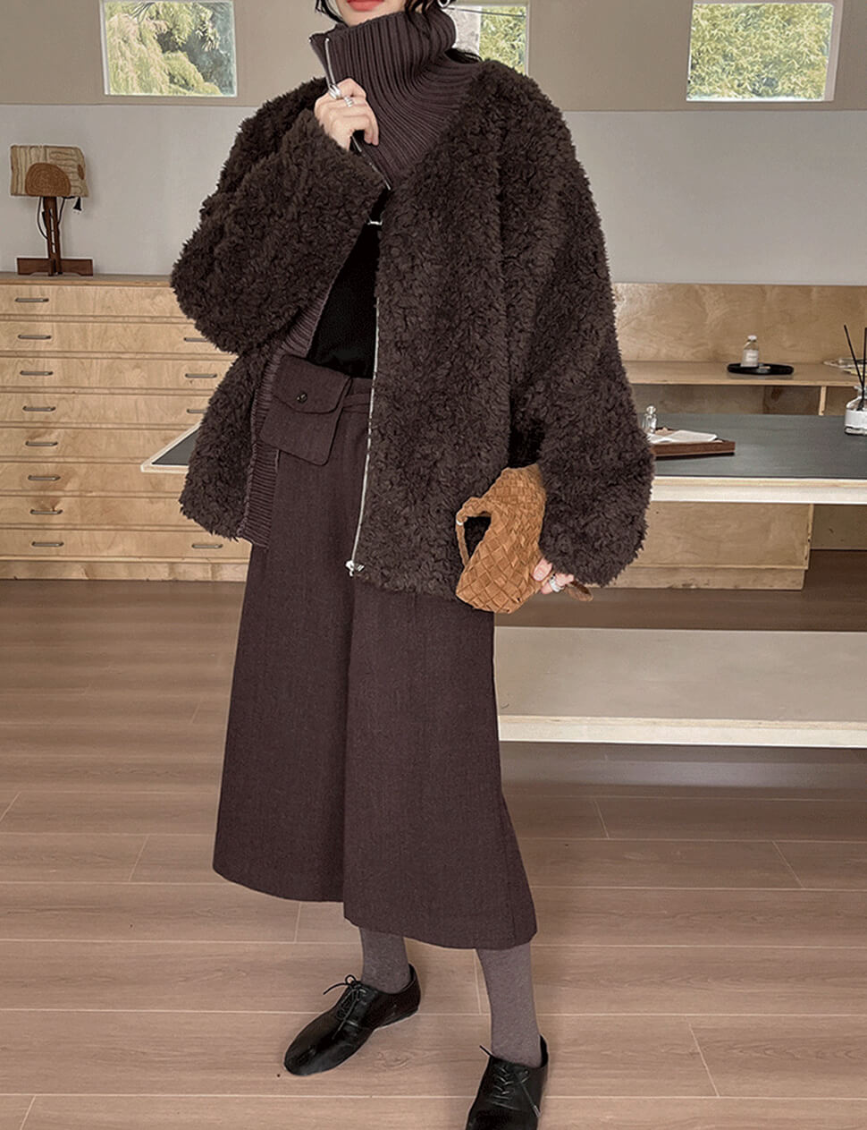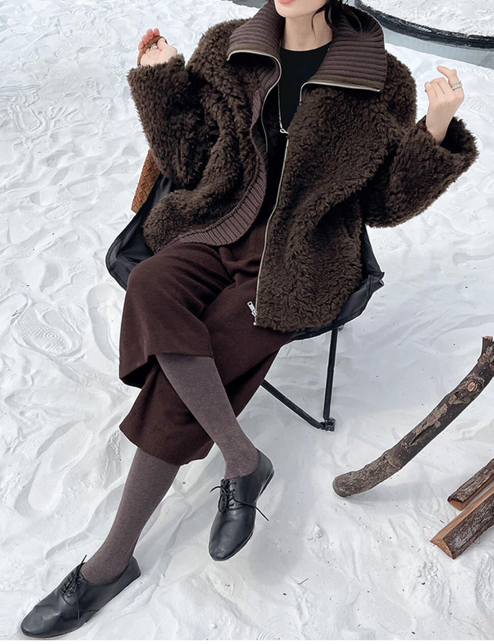 Chocolate brown faux fur zip knit jacket