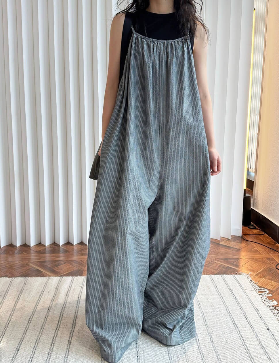 Wide Leg Baggy Stripe Jumpsuit