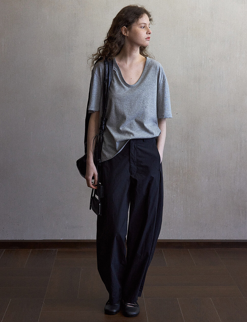 Grey Scoop Neck Relaxed Tee-PREORDER