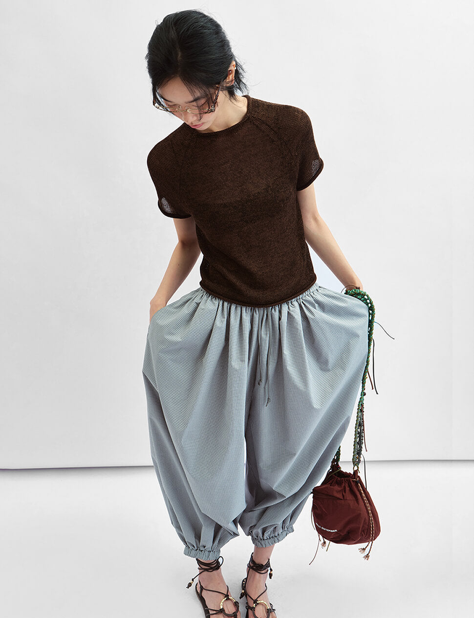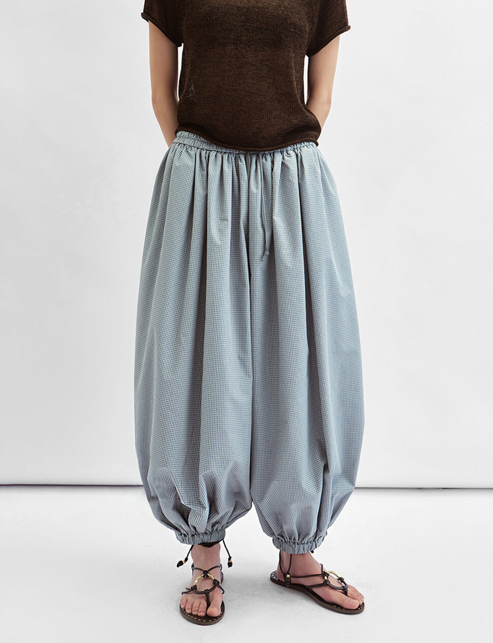 Light Grey Micro-Check Balloon Pants-PREORDER