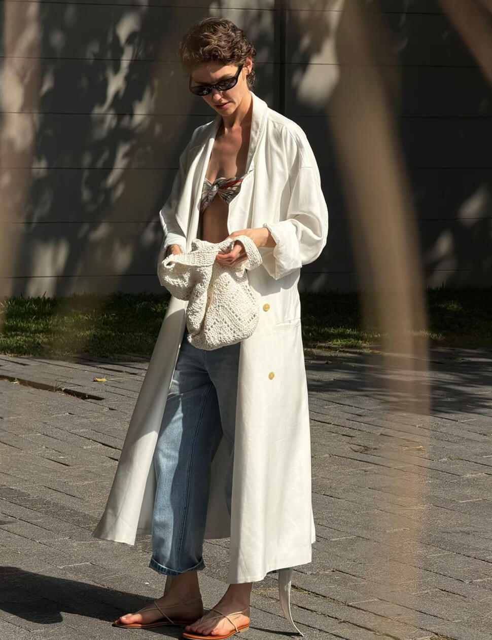 We produce on demand-once it's gone, it's gone.The trench that works harder than it looks. Cut in 100% Lyocell for a weightless drape that moves with you, the Oversized Lightweight Belted Trench Coat is the kind of layering piece that makes everything underneath look intentional. The oversized silhouette skims the body without bulk, falling to midi length with a clean lapel collar and relaxed sleeves you'll roll exactly once and leave that way. Belt it loose, leave it open, wear it over a slip dress or straight-leg jeans — it resolves every outfit question without asking for much in return. Available in white and beige.