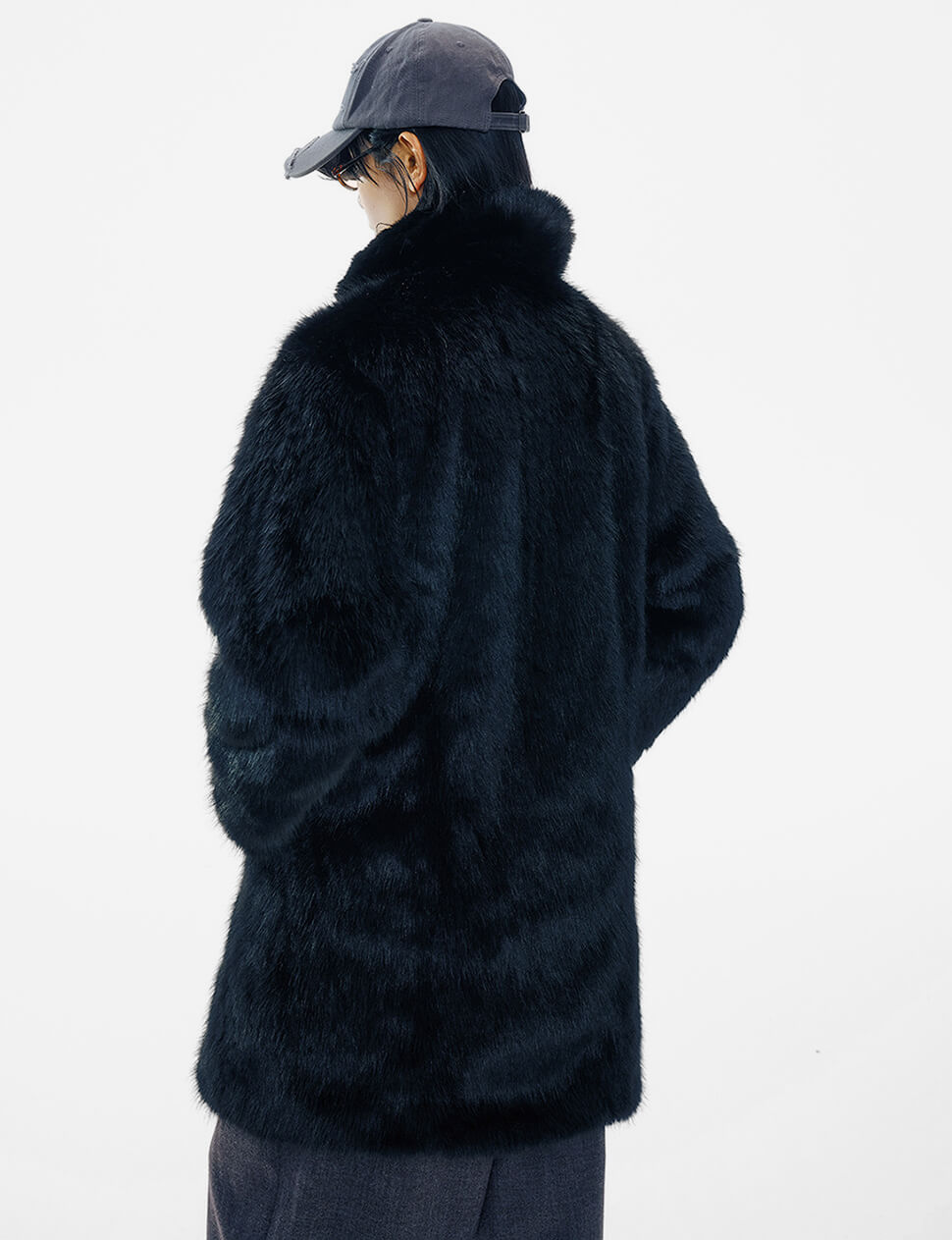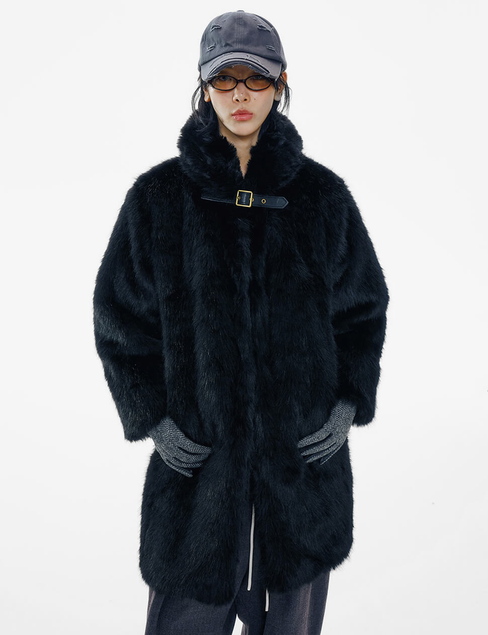 Black Buckled Neck Fur Coat