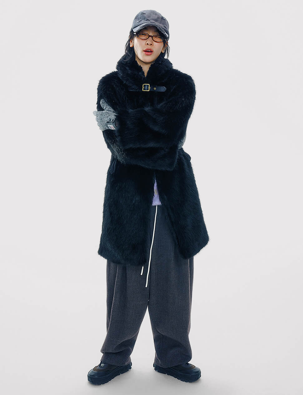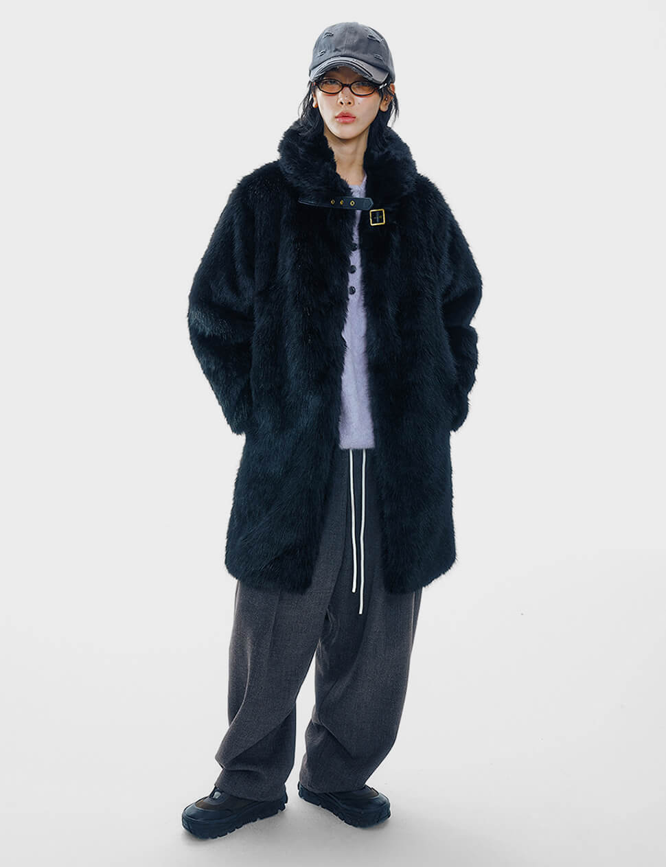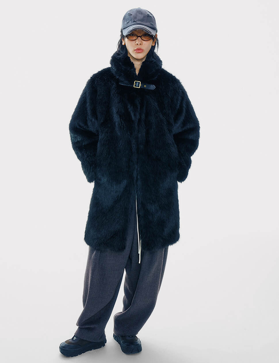 Faux Fur Buckled Neck Coat