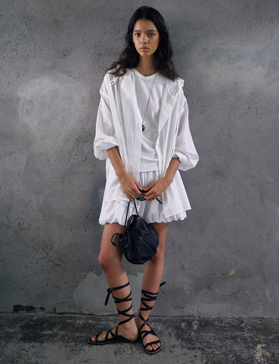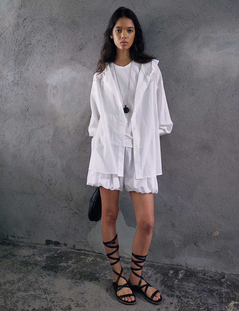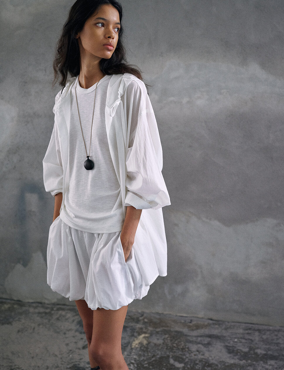 There is a particular kind of jacket that exists somewhere between outerwear and layering piece — the kind you reach for without thinking and wear three different ways before noon. The Atelier Jacket is cut from 100% cotton in a dramatically oversized silhouette with a gathered hood that frames without constraining, voluminous sleeves that can be worn long or rolled, and a relaxed open front that works over everything from a white tank to a slip dress. The crinkle-weight cotton is light enough for warm weather, structured enough to hold its shape. One size. Available in black, white and yellow.