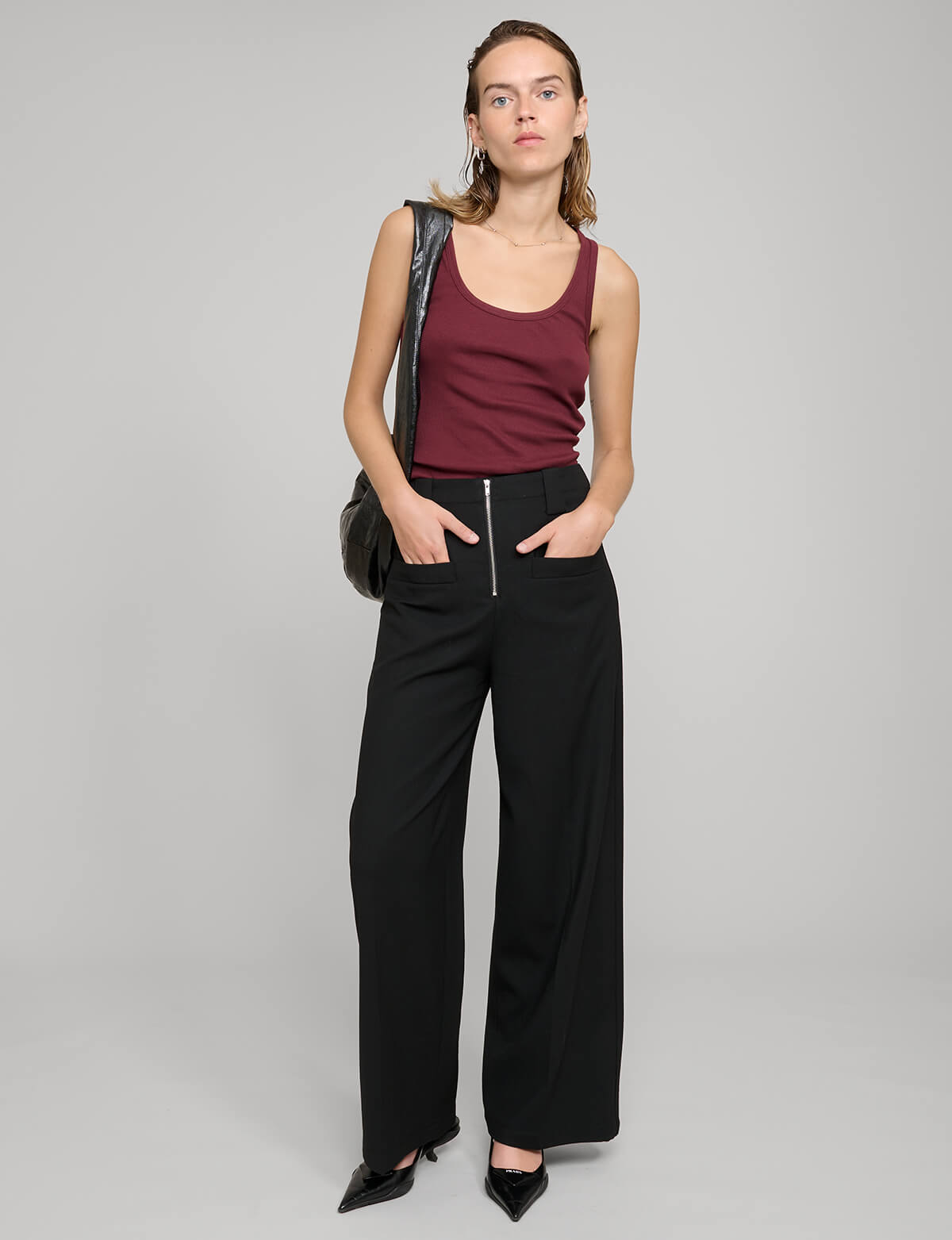 Zip Black Wide-Leg Pants