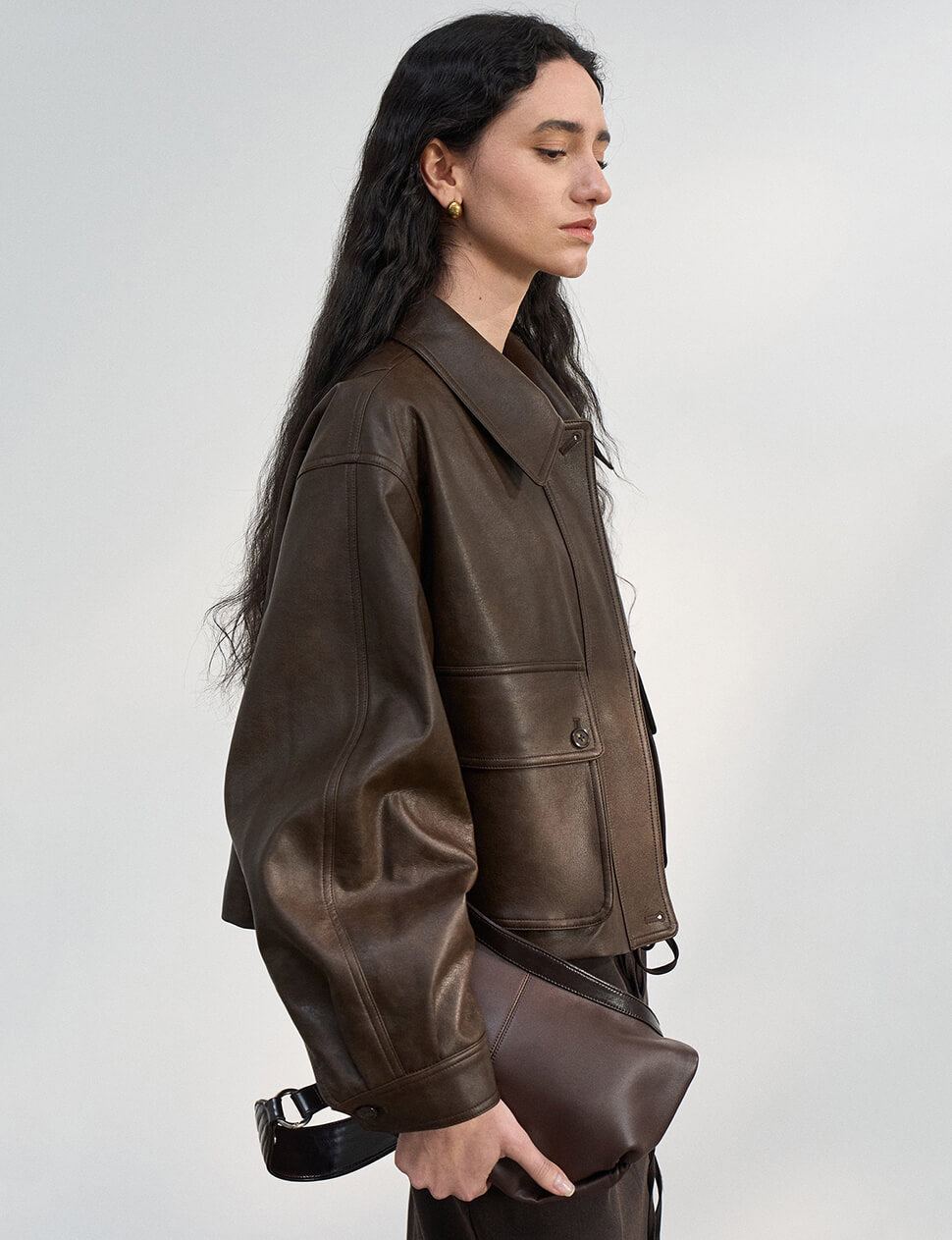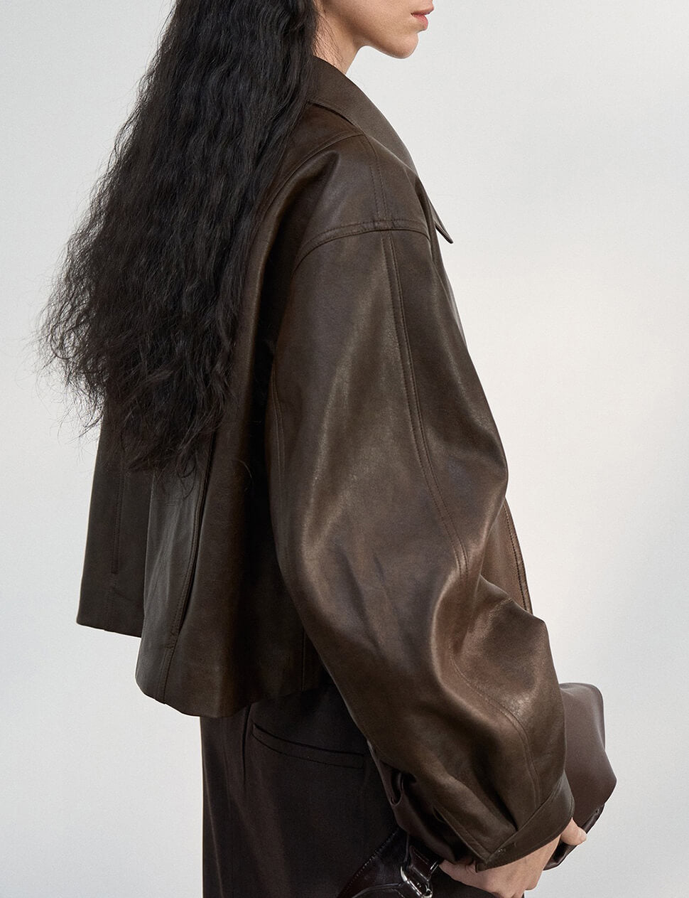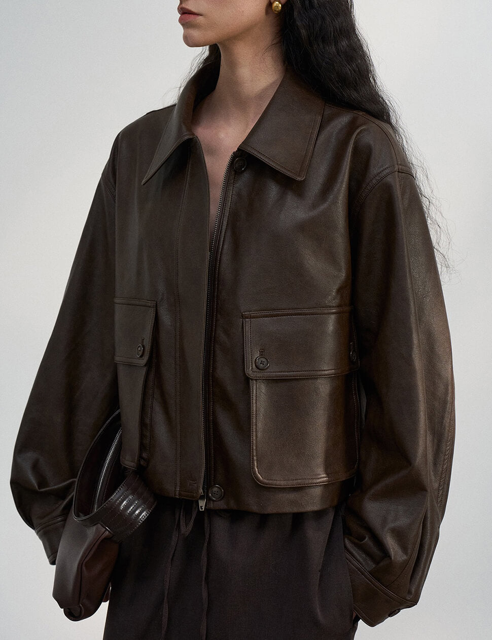 Brown Leather Crop Jacket
