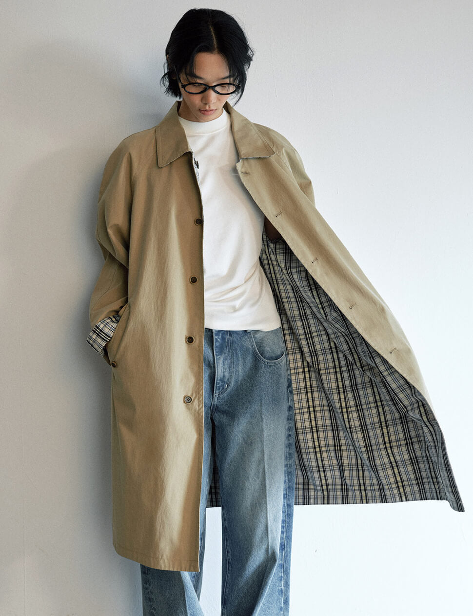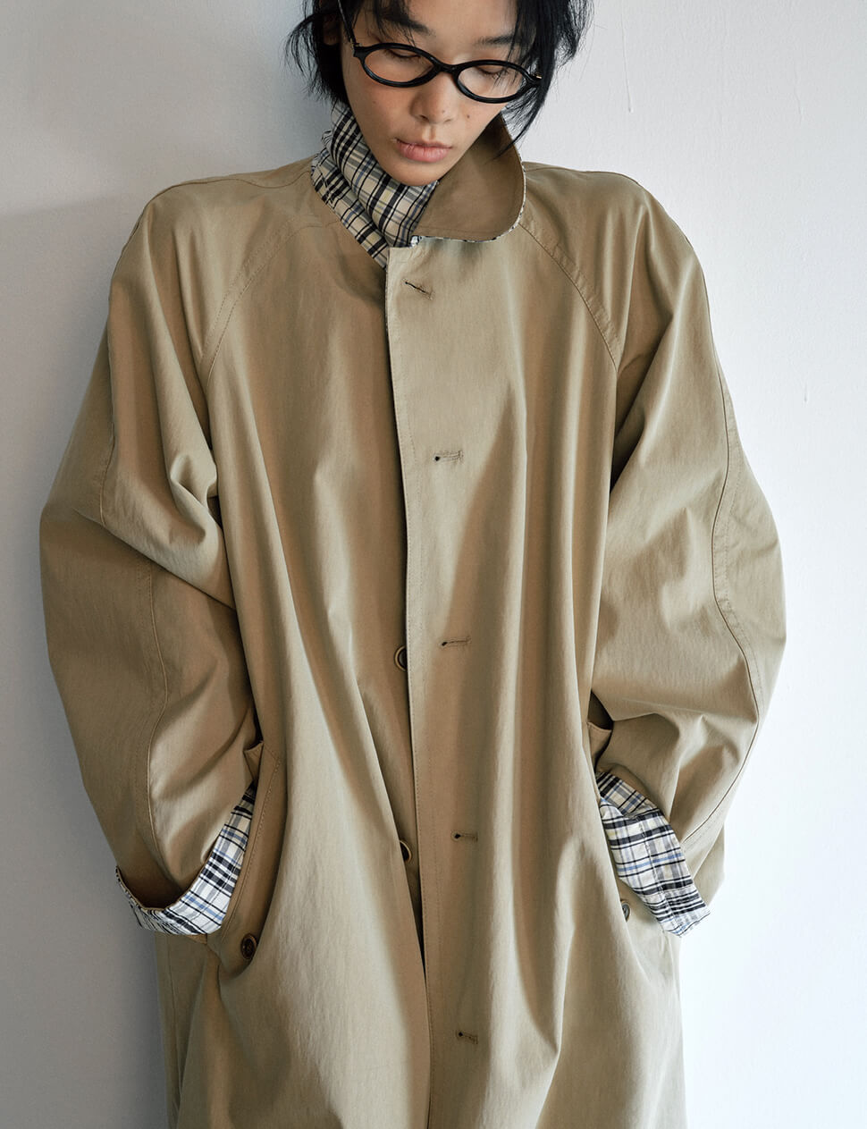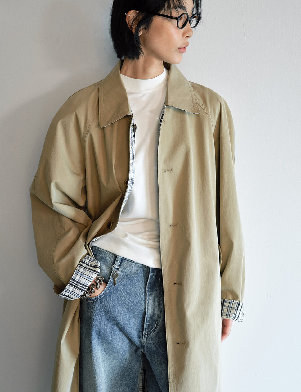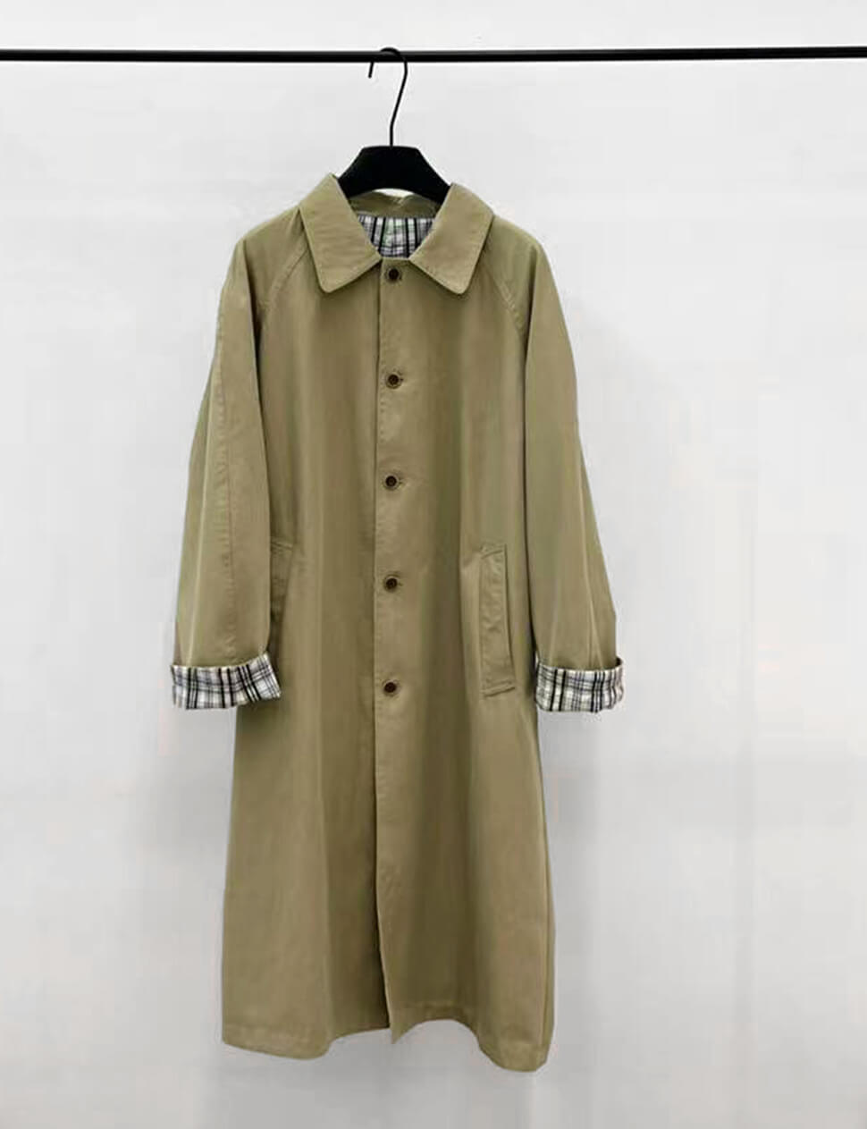 Khaki Reversible Trench Coat | Plaid Lined Oversized Long Coat