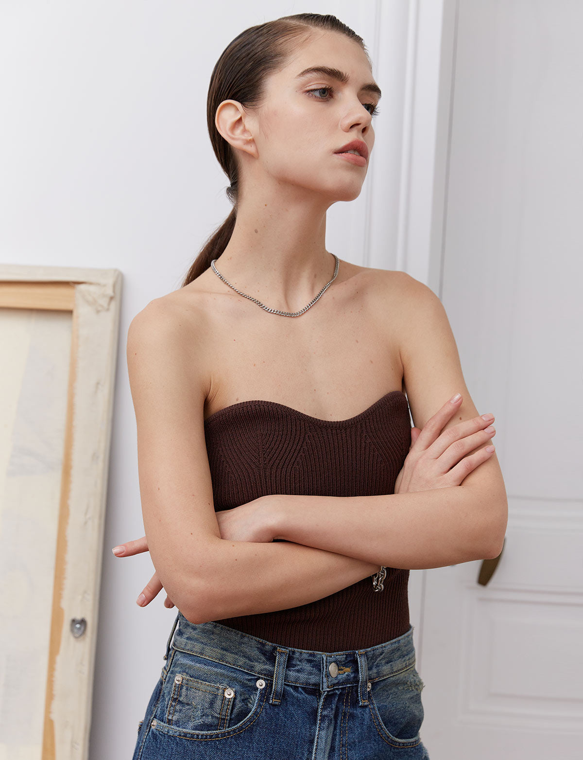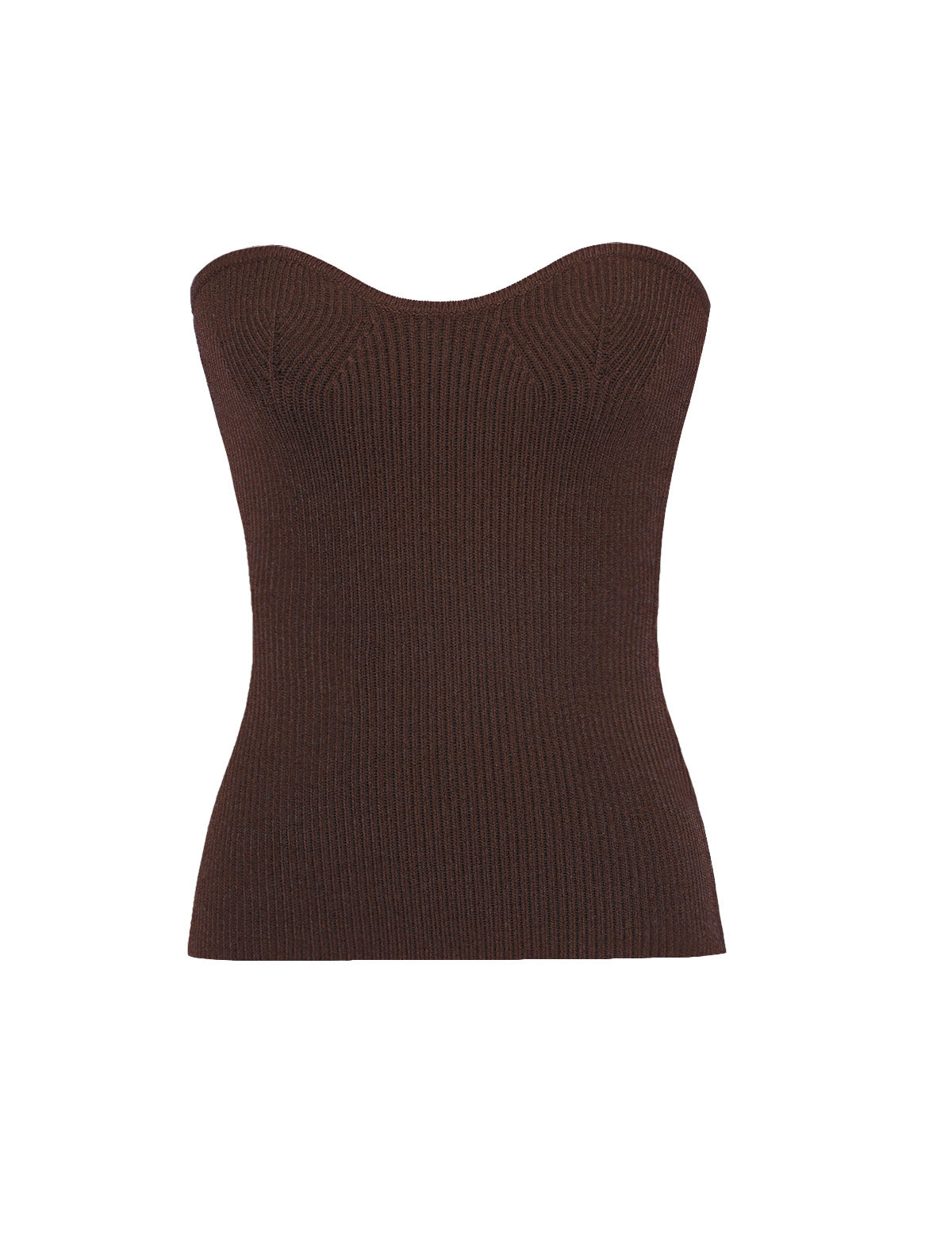 FINAL SALE Structured thick chocolate brown knit strapless bustier top .  Make a statement in this sweetheart neckline knit top.