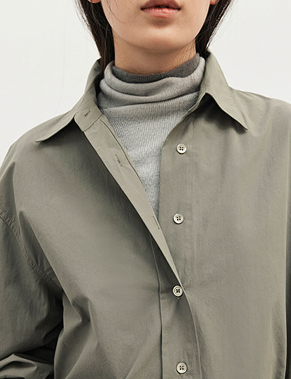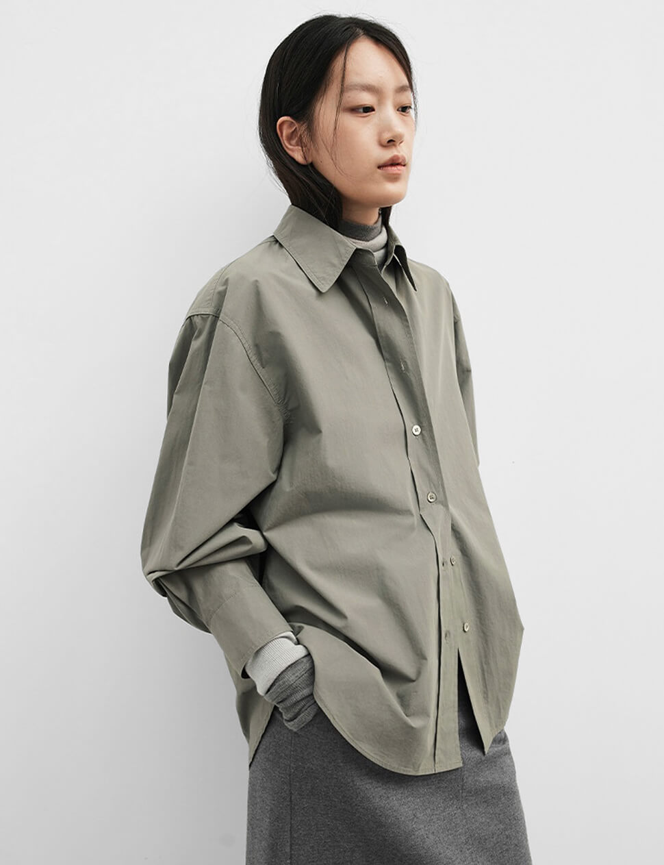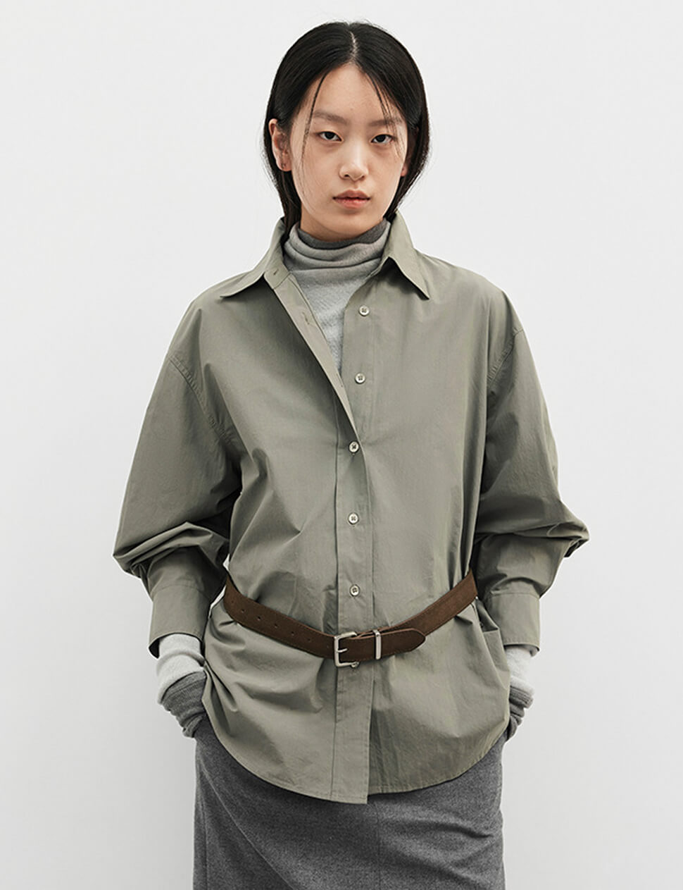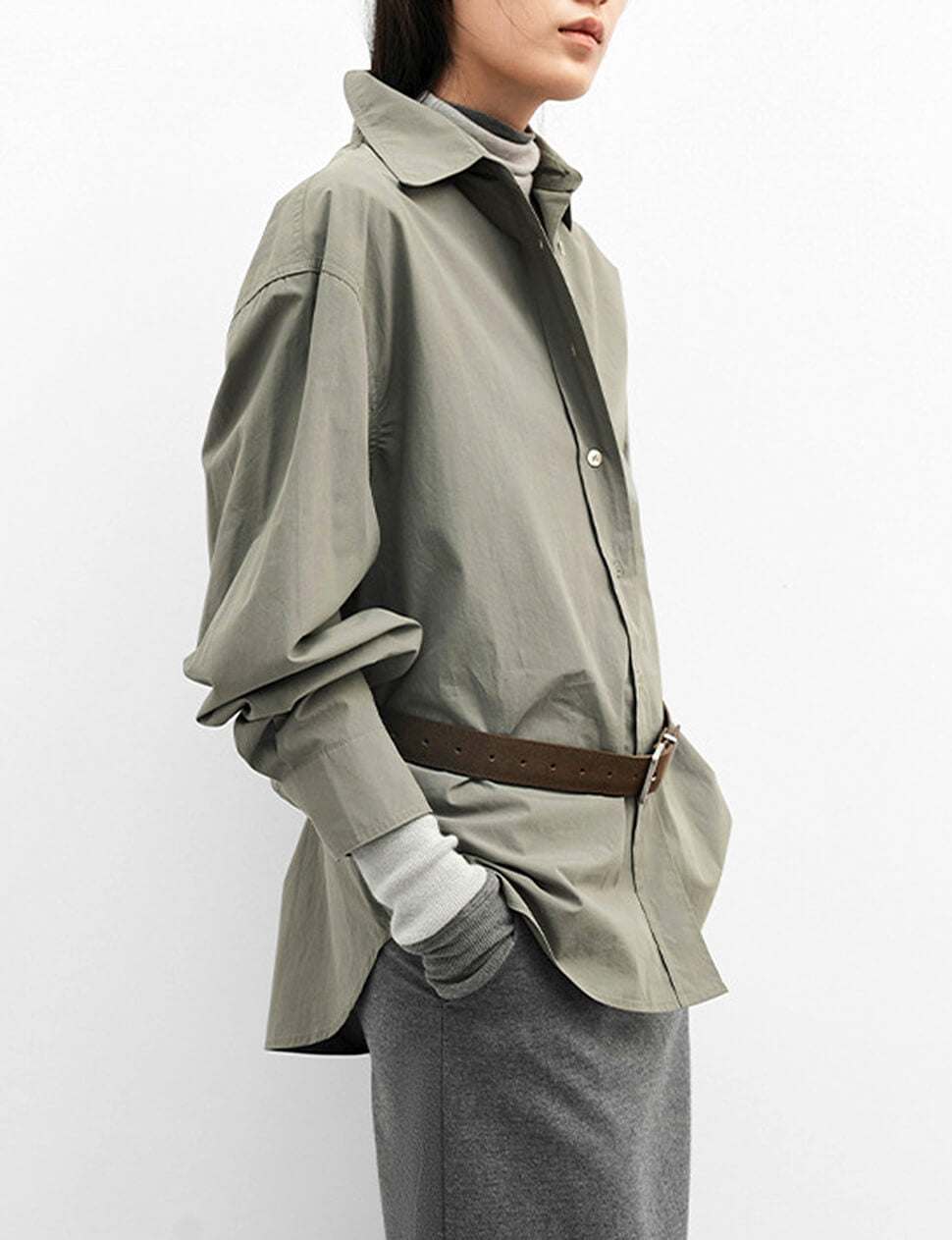 Sage Belted Oversized Shirt /Minimalist Button Down Shirt
