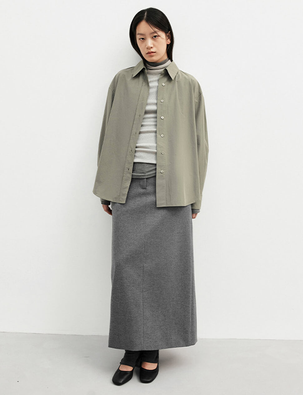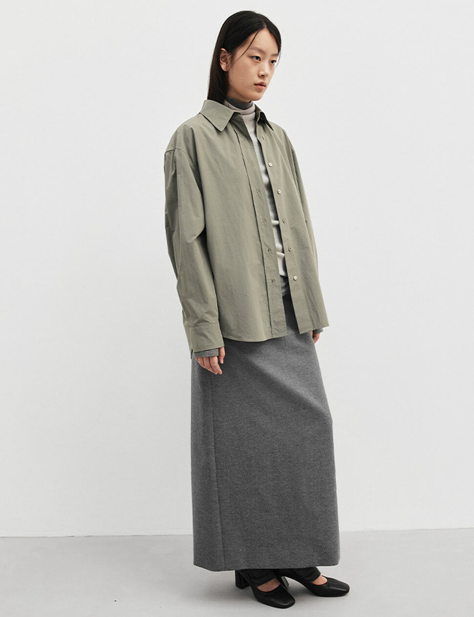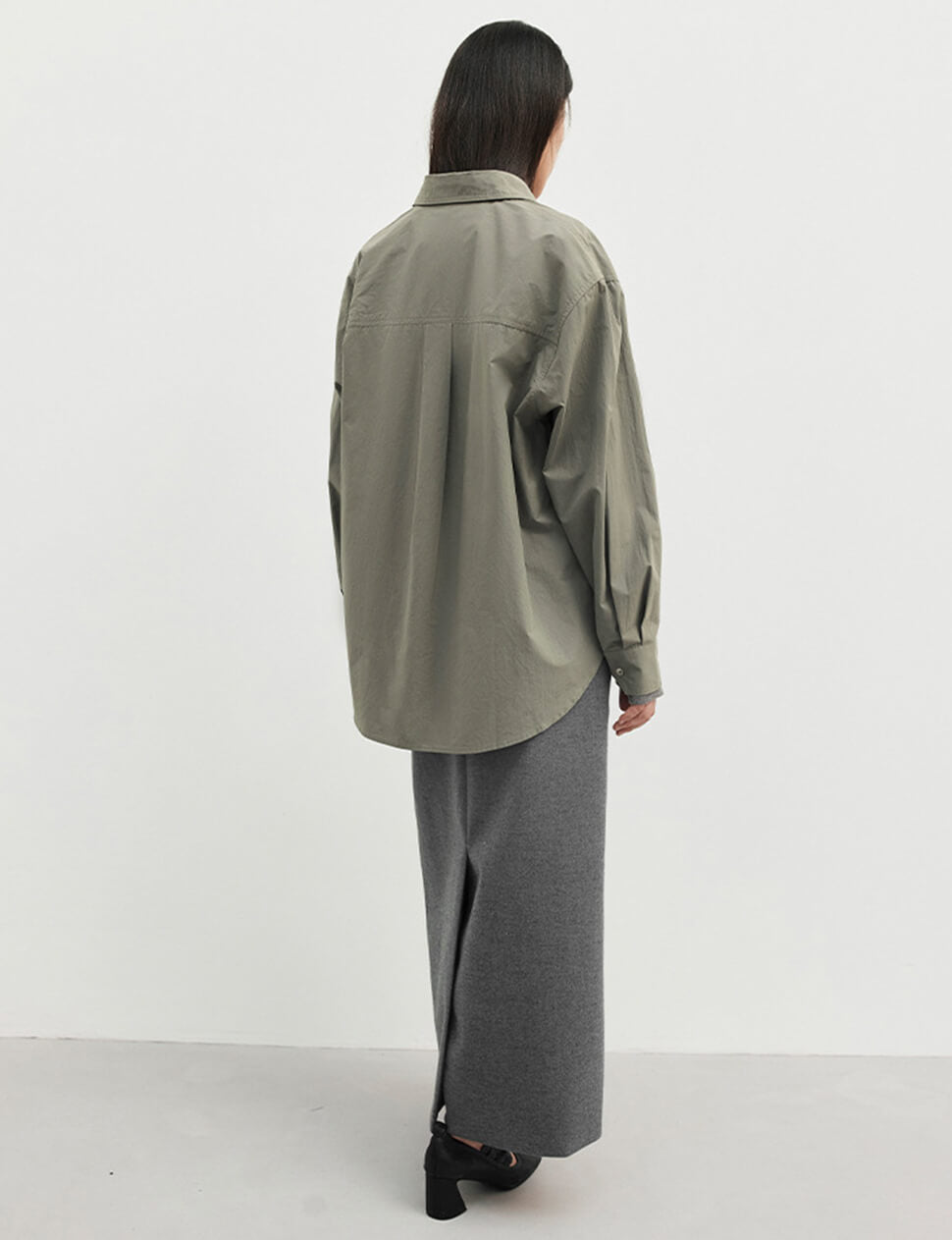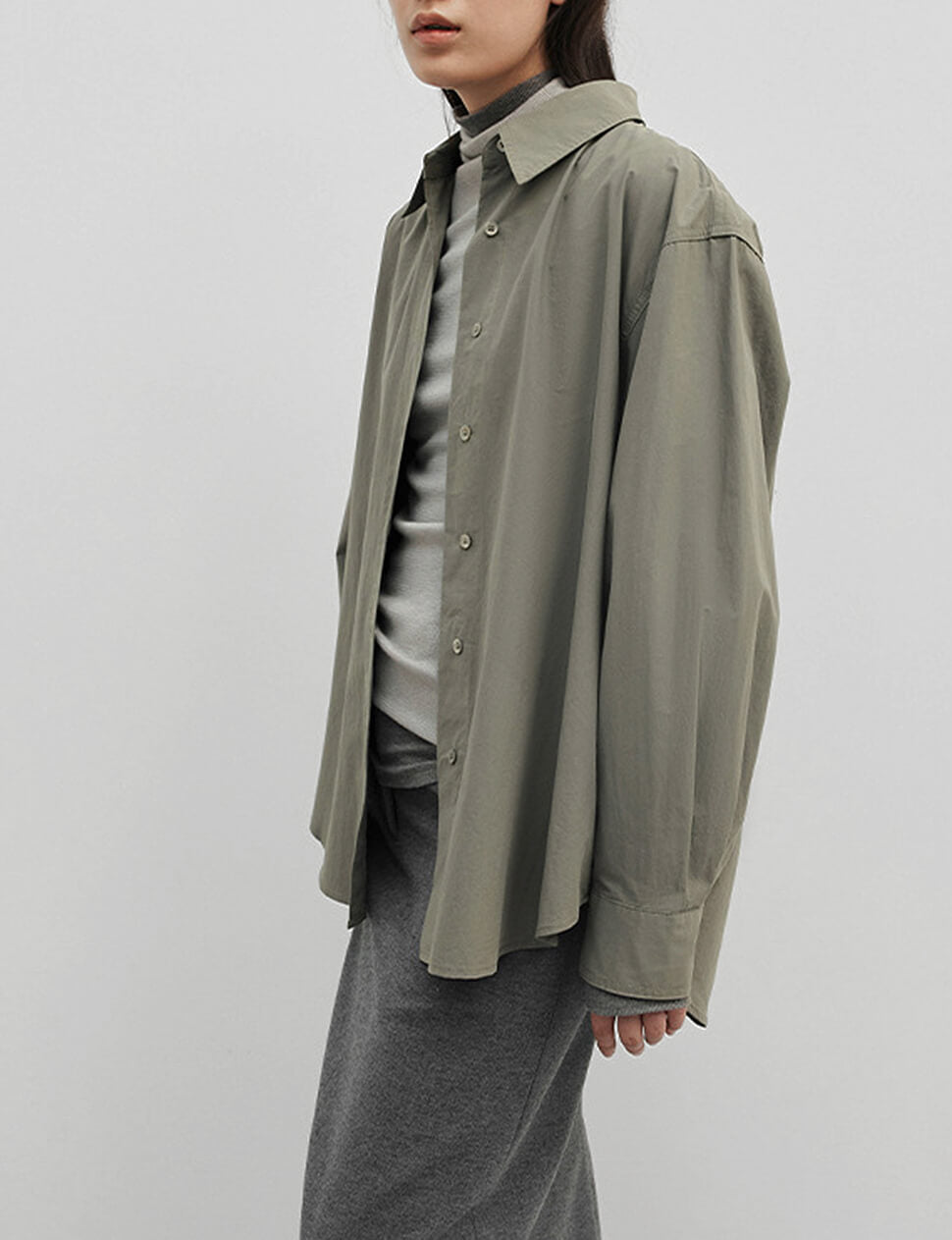 Sage Belted Oversized Shirt /Minimalist Button Down Shirt