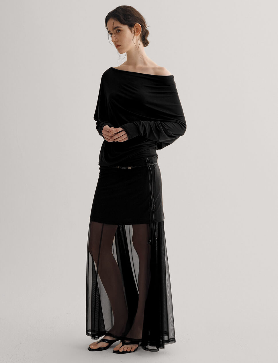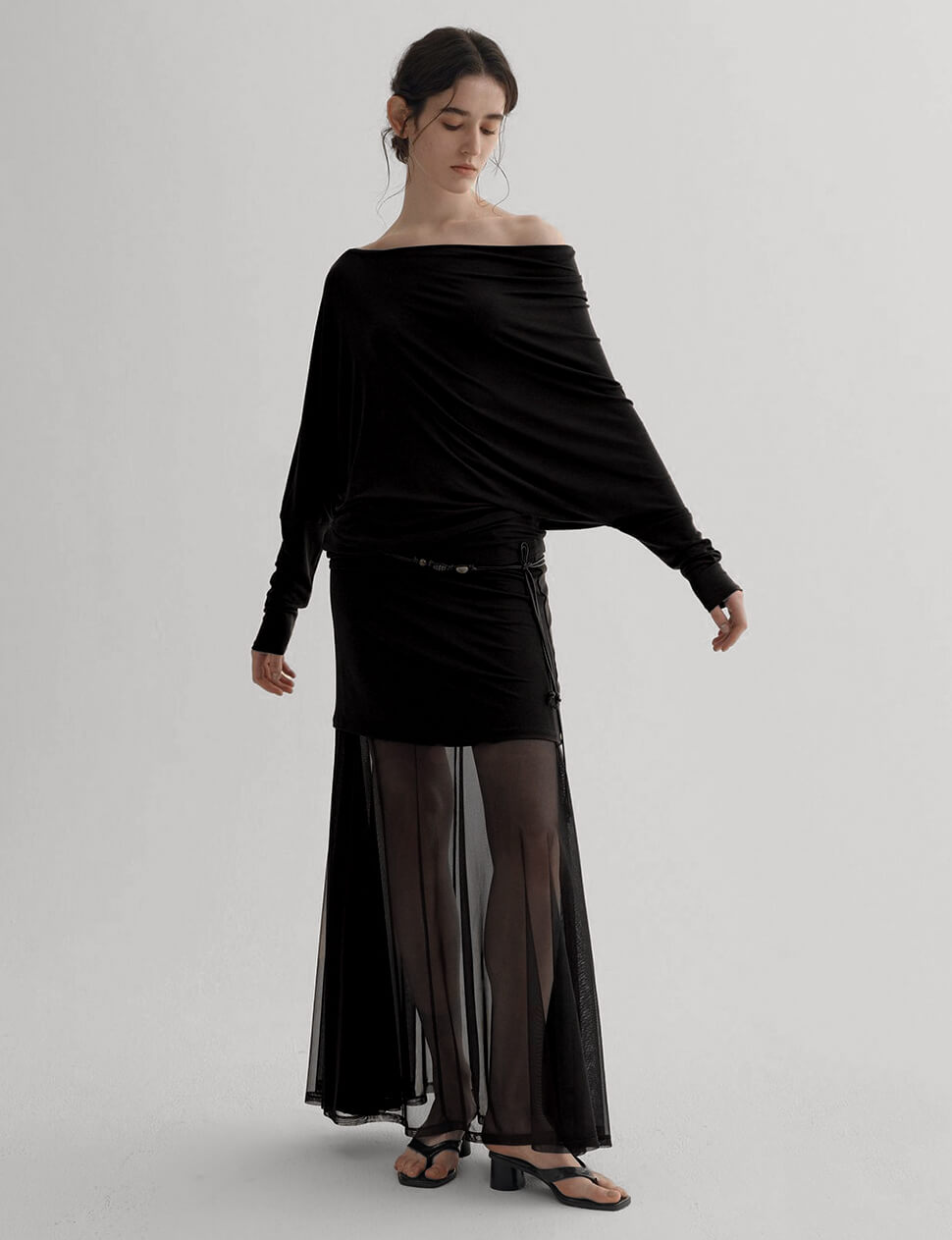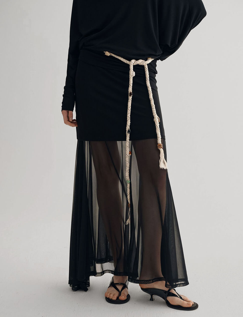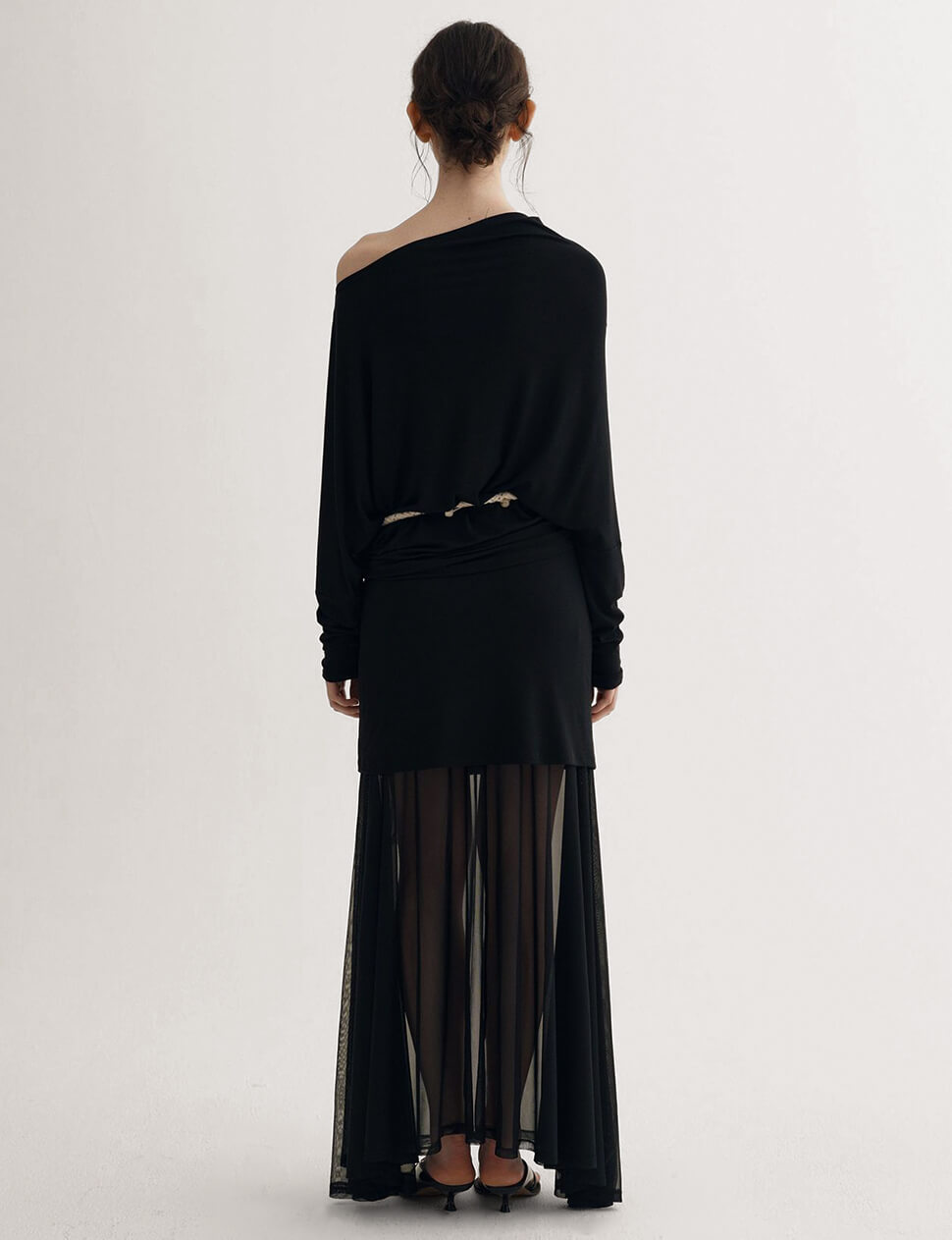 Black tube skirt with sheer under layer