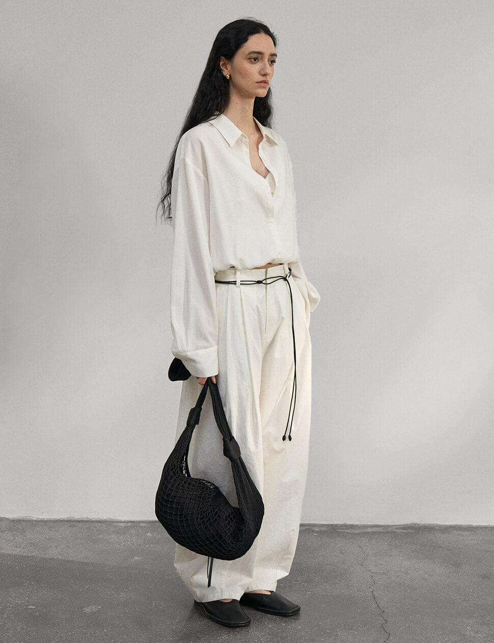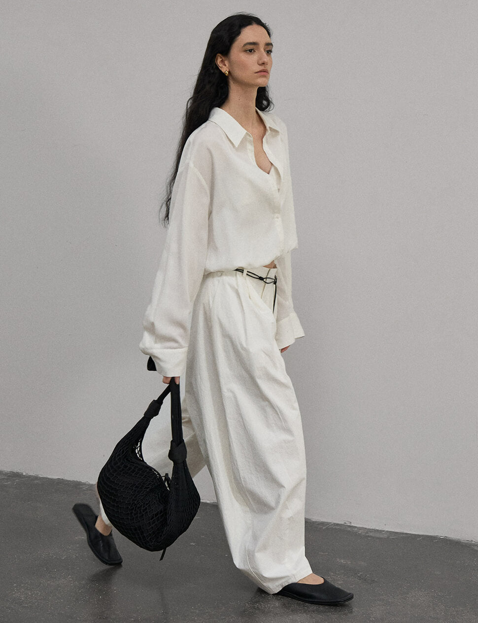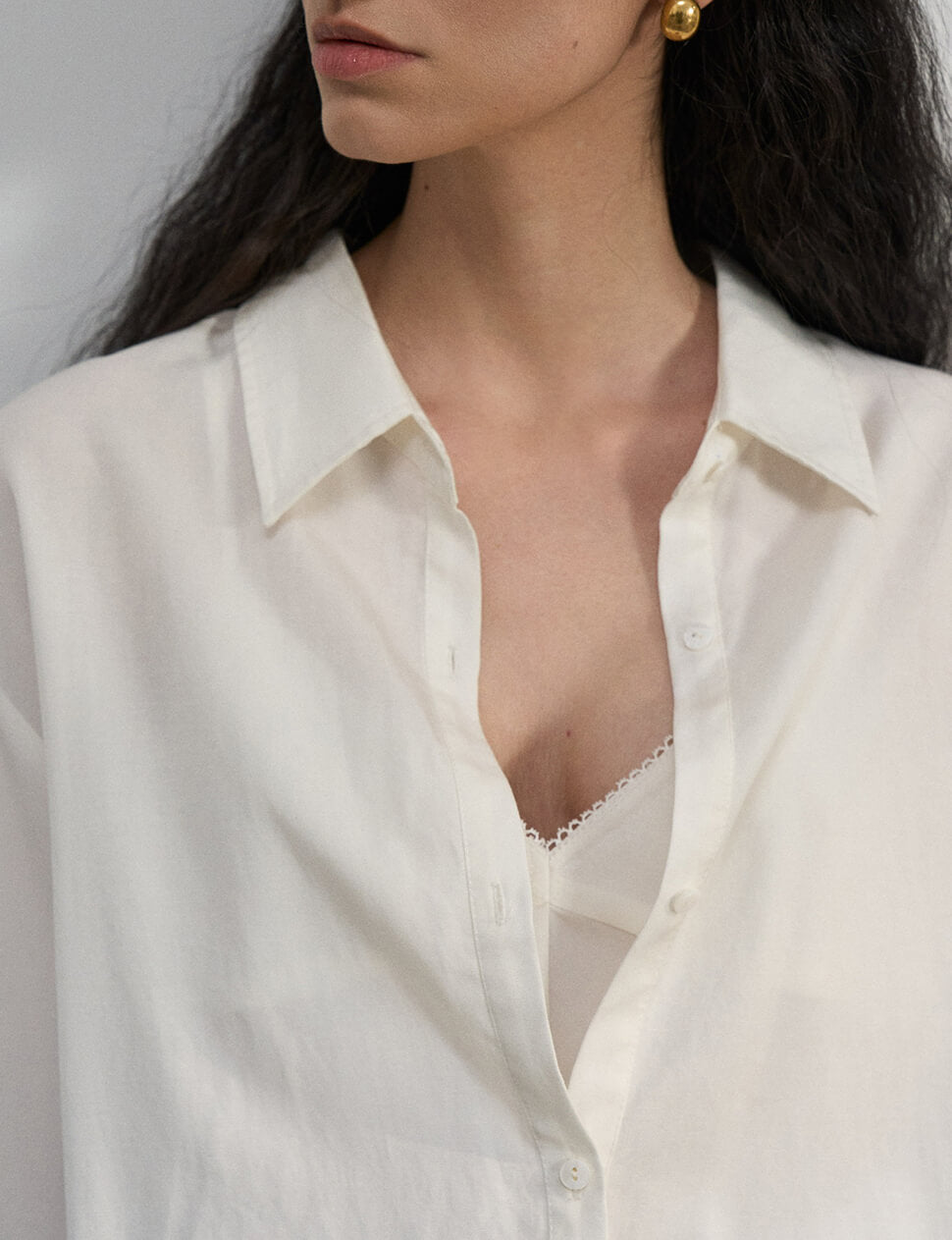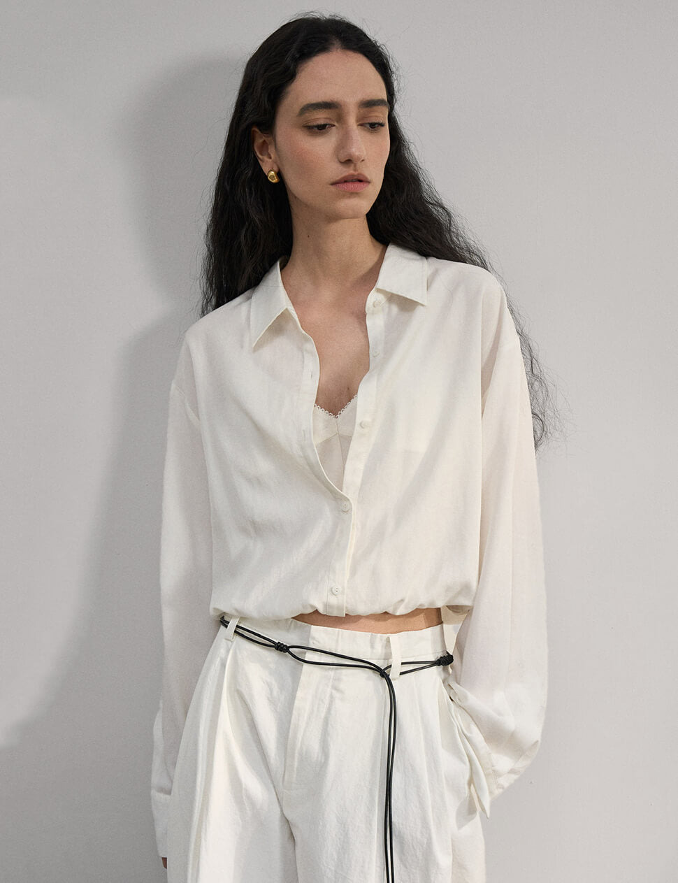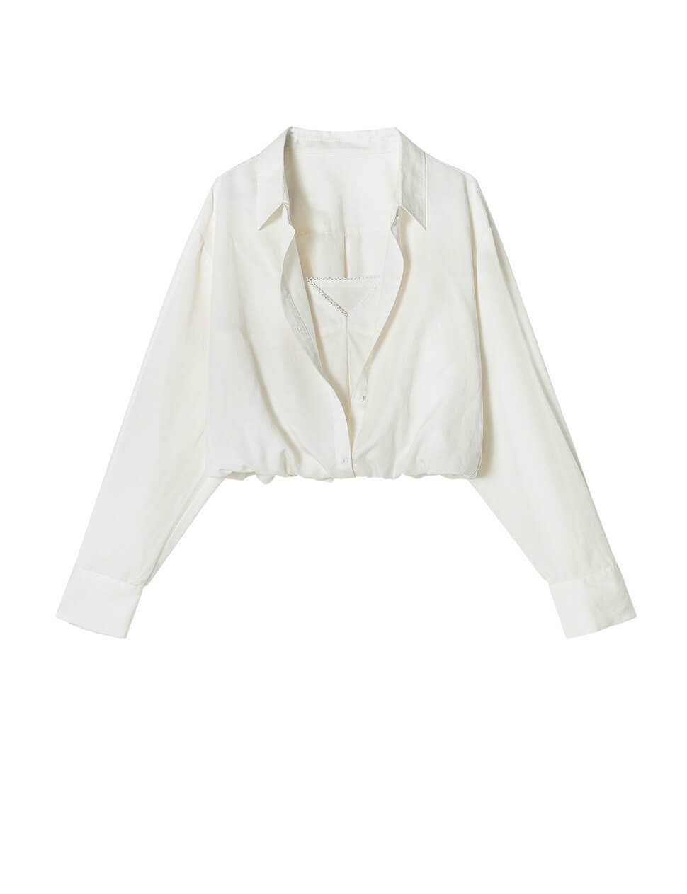 FINAL SALE White bubble hem crop shirt with attached inner tank.
